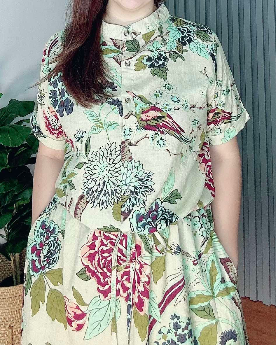 🌿Half Button Front Closure with Drawstring Waist