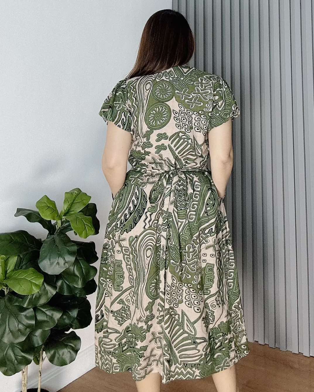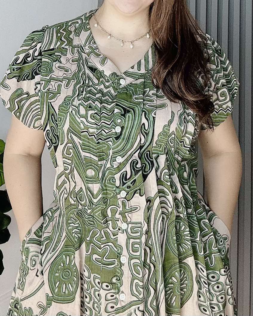 Made from breathable premium cotton, this midi dress features a button-down front, soft puff sleeves, and side pockets. Finished with an adjustable back tie for a comfortable, flattering fit. Simple, easy, and perfect for everyday wear 🤎