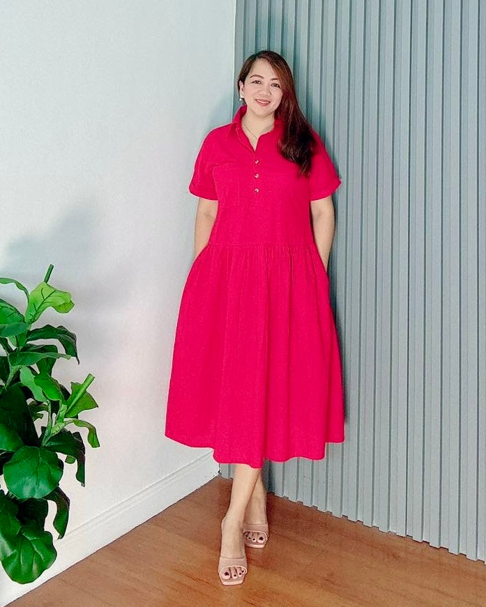 An easy, breathable dress made from soft cotton linen fabric for all-day comfort. This shirt dress features a collared neckline, half button front, and short cuffed sleeves for a clean, casual look.