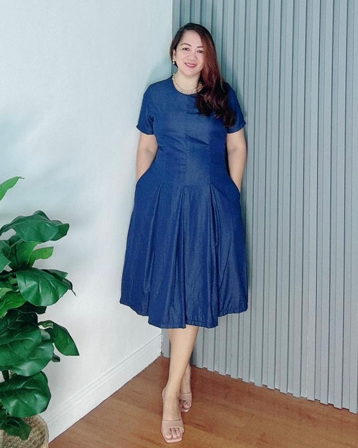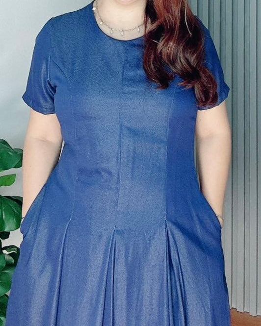 A breezy cotton Soft Denim dress with a relaxed fit, side pockets, and a flattering pleated skirt—perfect for everyday comfort and effortless style.