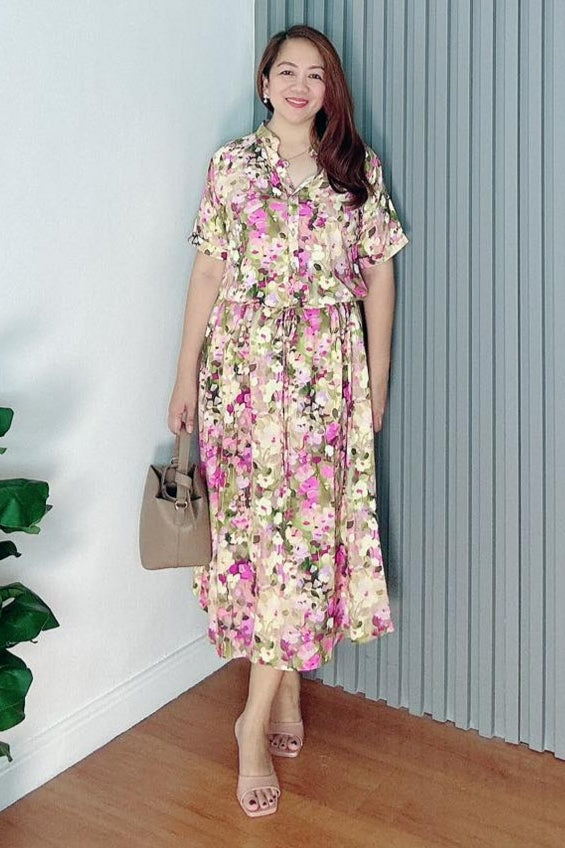 *Donna Printed Drawstring Dress 0386