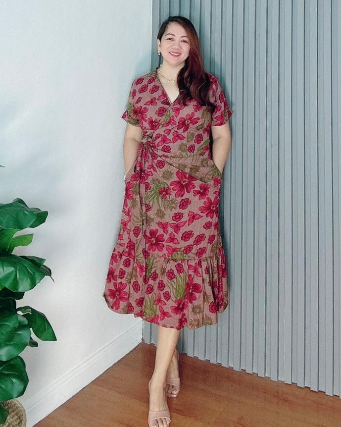 Our Mara Dress, crafted from soft and breathable thin cotton, features an overlap style with a tiered detail near the hem, short sleeves, and two pockets for everyday ease.