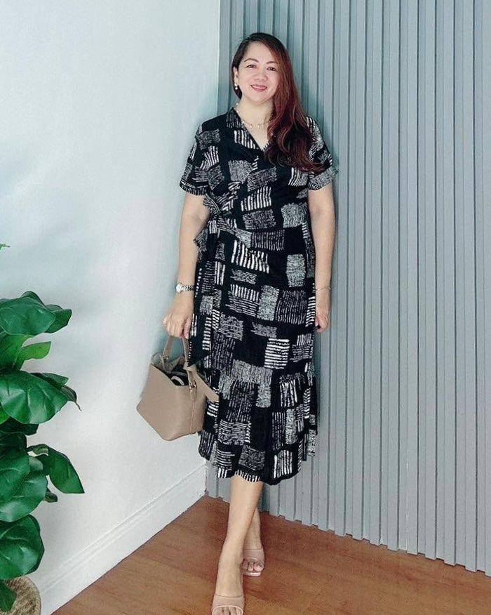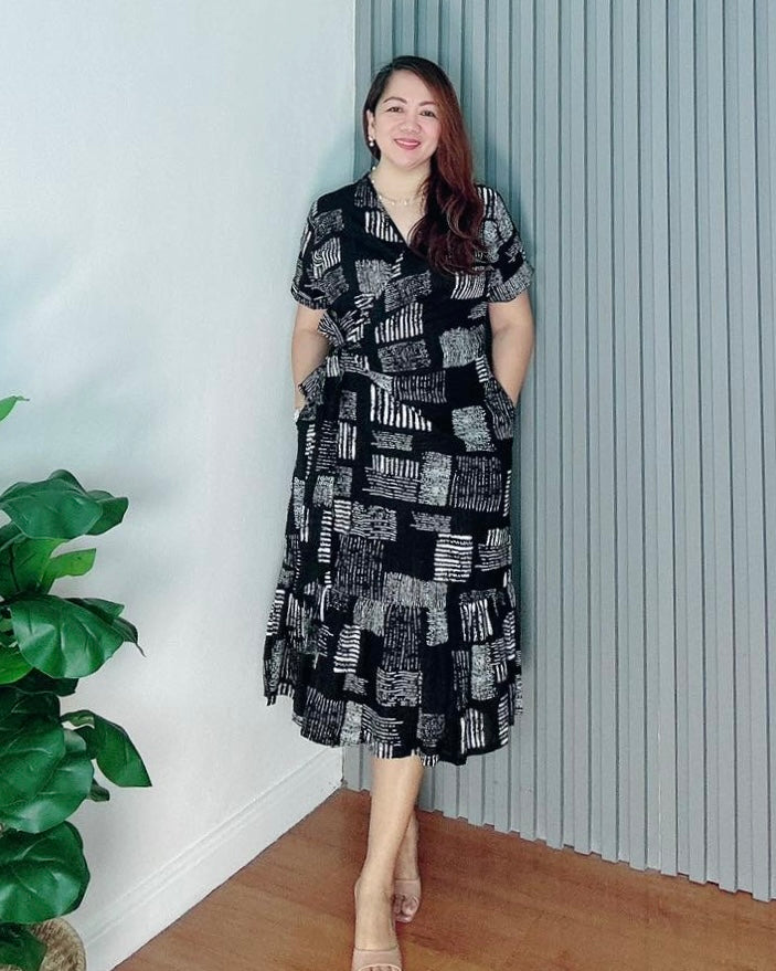 Our Mara Dress, crafted from soft and breathable thin cotton, features an overlap style with a tiered detail near the hem, short sleeves, and two pockets for everyday ease.